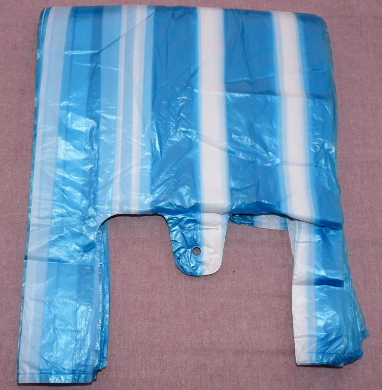 Mikrotenová taška s pruhy 4 kg / 10 kg. Barvy : modro - bílá,zeleno-bílá, červeno - bílá. Blok = 100 ks, karton = 2000 ks